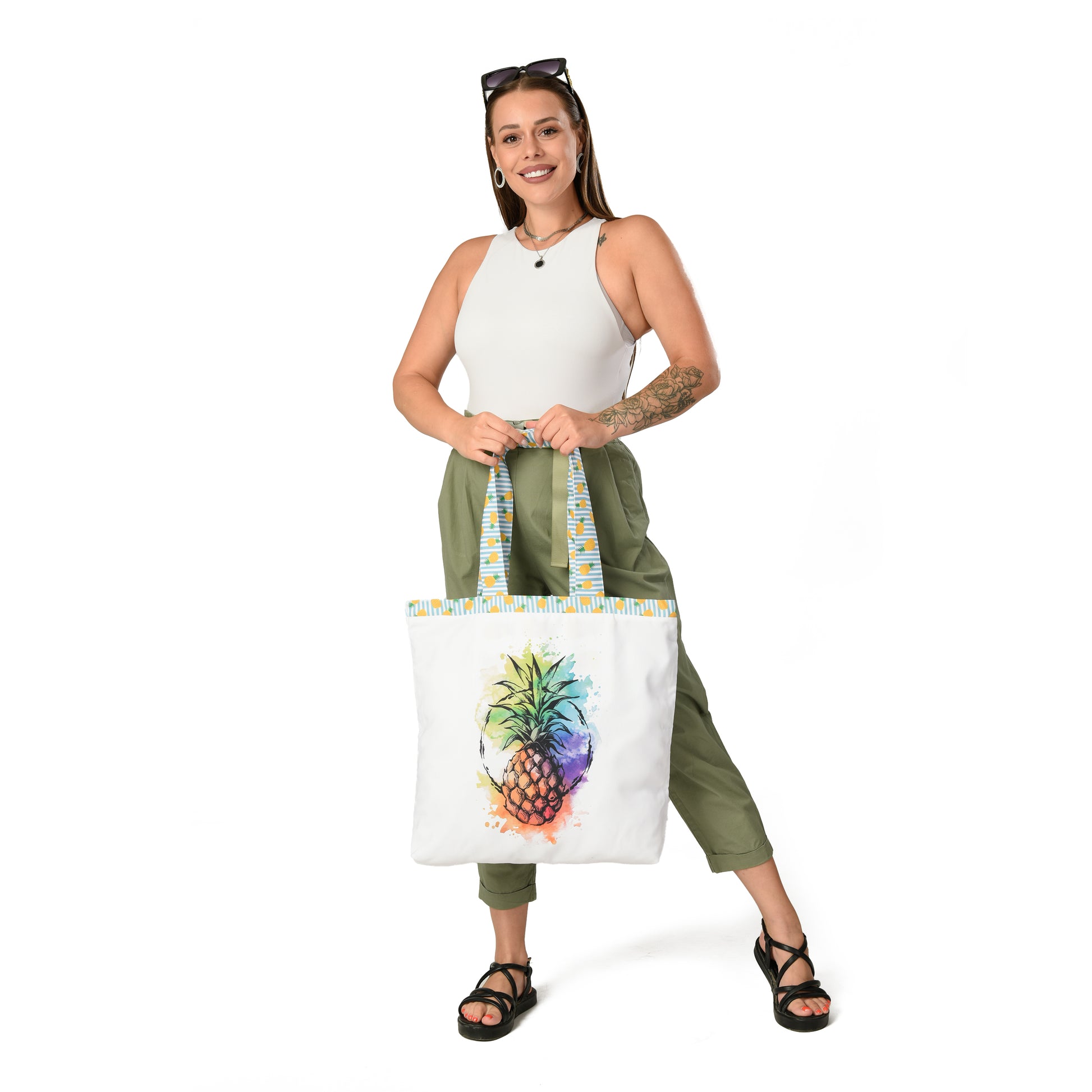 This tote bag is made from durable canvas that is both stylish and functional. It's perfect for everyday use, shopping, travel, or the beach.